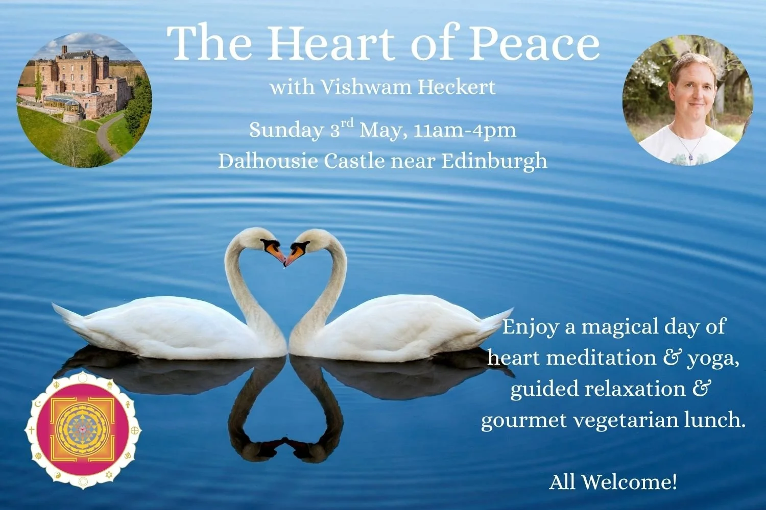 This is your invitation to a beautiful day of Heart Of Living Yoga, Meditation & Deep Relaxation at the stunning Dalhousie Castle, south of Edinburgh. As we face great challenges, individually and globally, it can be tremendously helpful to take time out to explore the very Heart of Peace which is within each of us. Together we will share life changing practices that help us make the shift from reaction to the ability to respond peacefully and even joyfully. Through these practices, we discover a kind of inner strength and deepening compassion, for ourselves and others, that helps us surf the challenges that life is offering to us.
